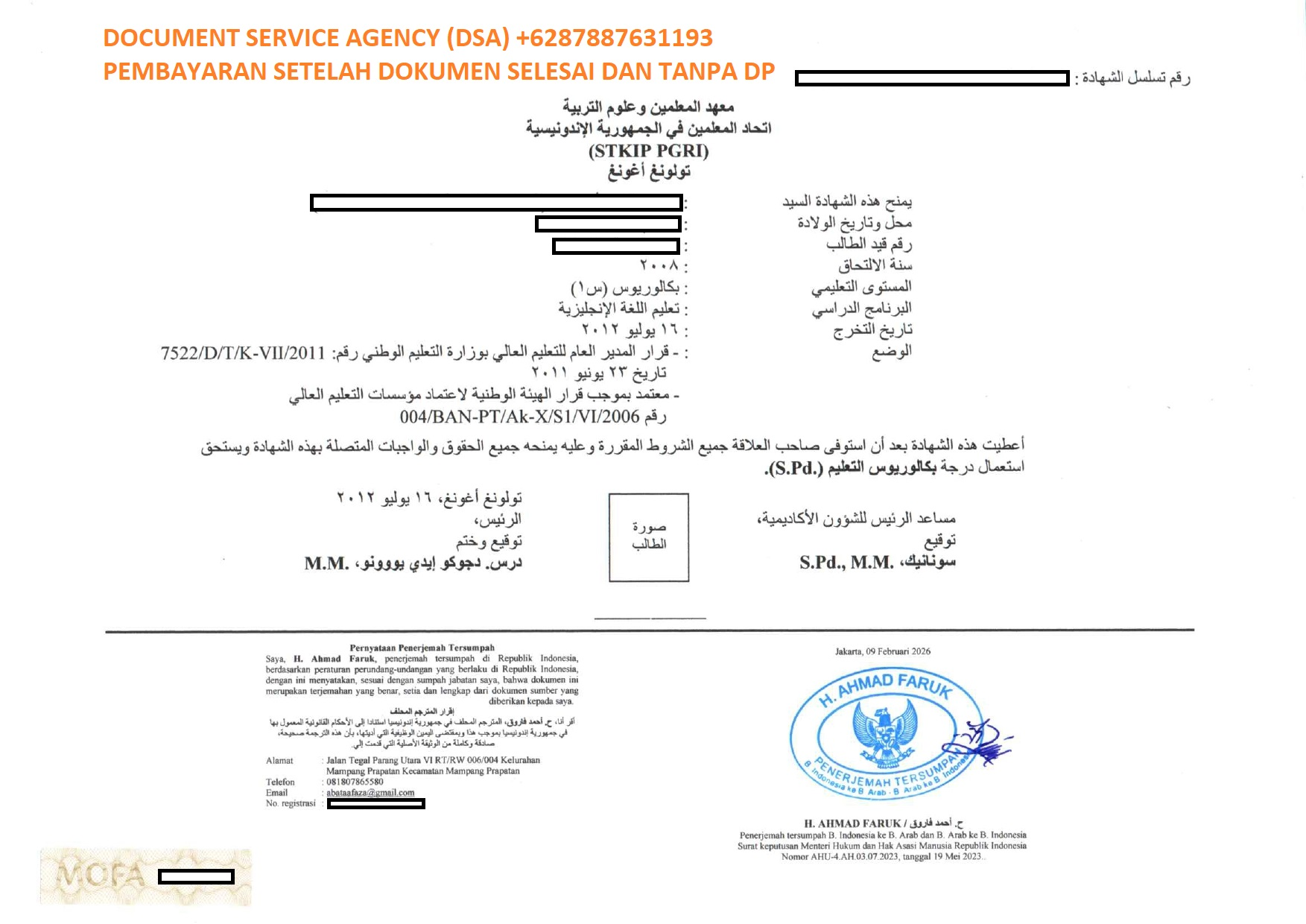 Telp/ Whatsapp : 021 48671259/ +62 878 8763 1193 atau email : documentsserviceagency@gmail.com
