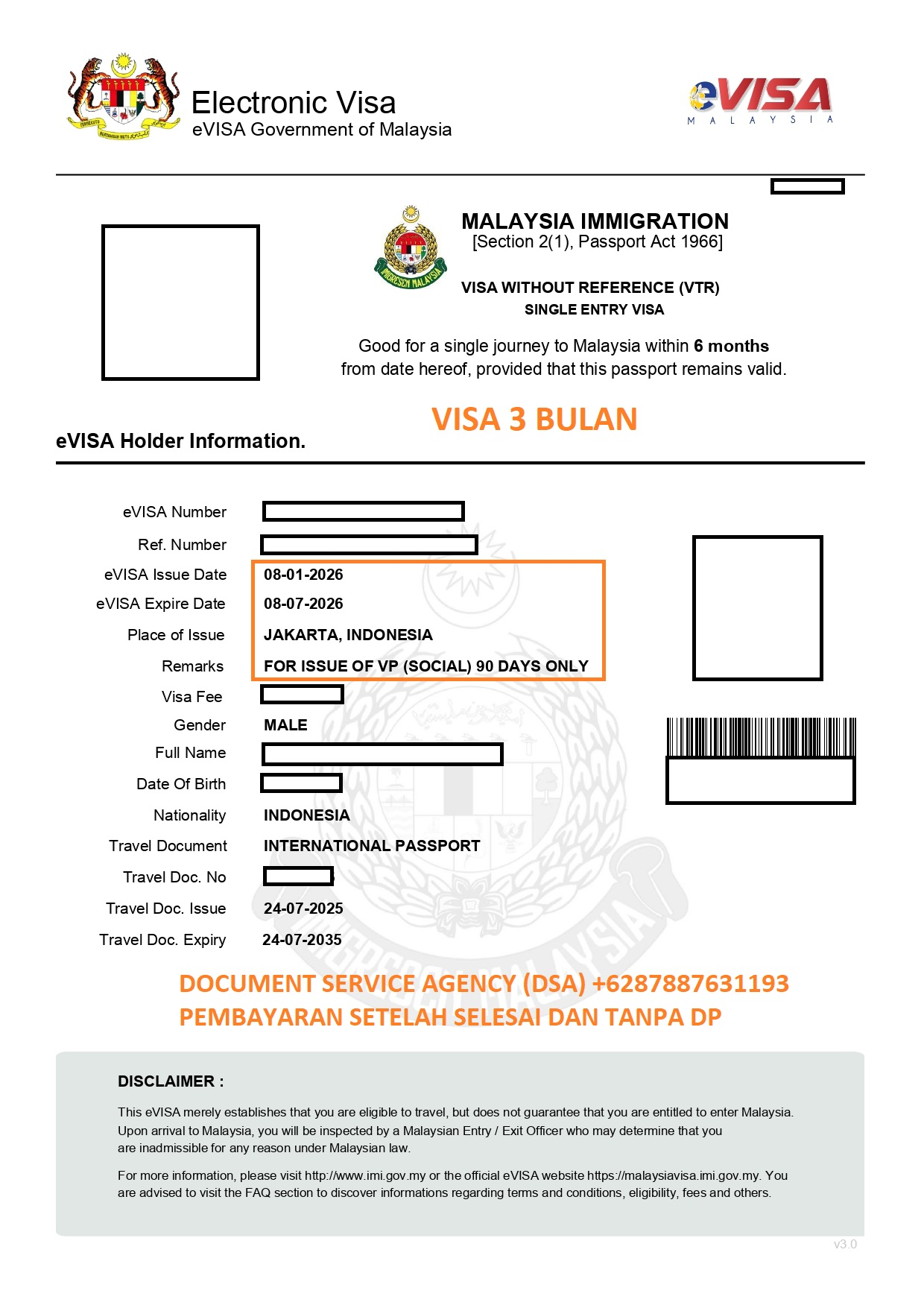 Syarat Visa 3 Bulan Malaysia
